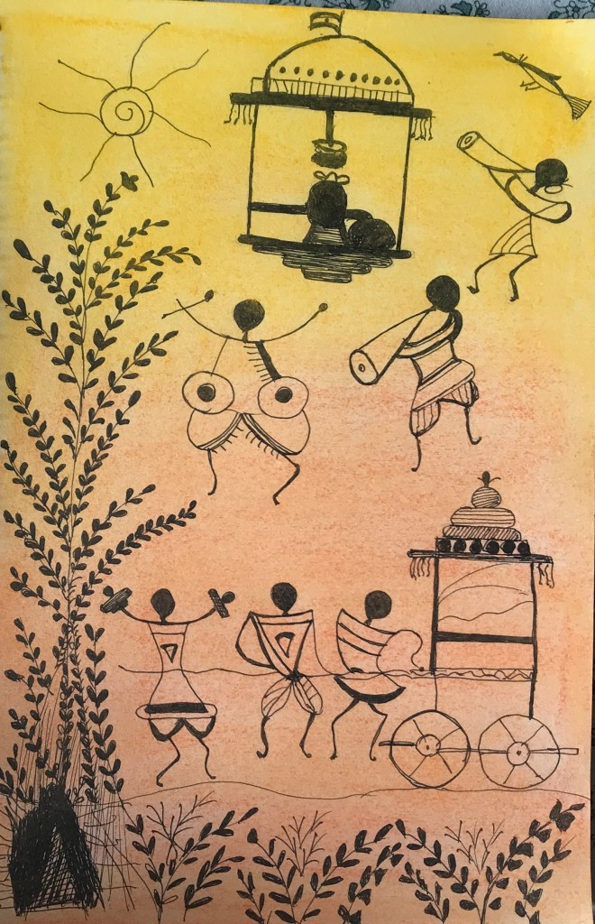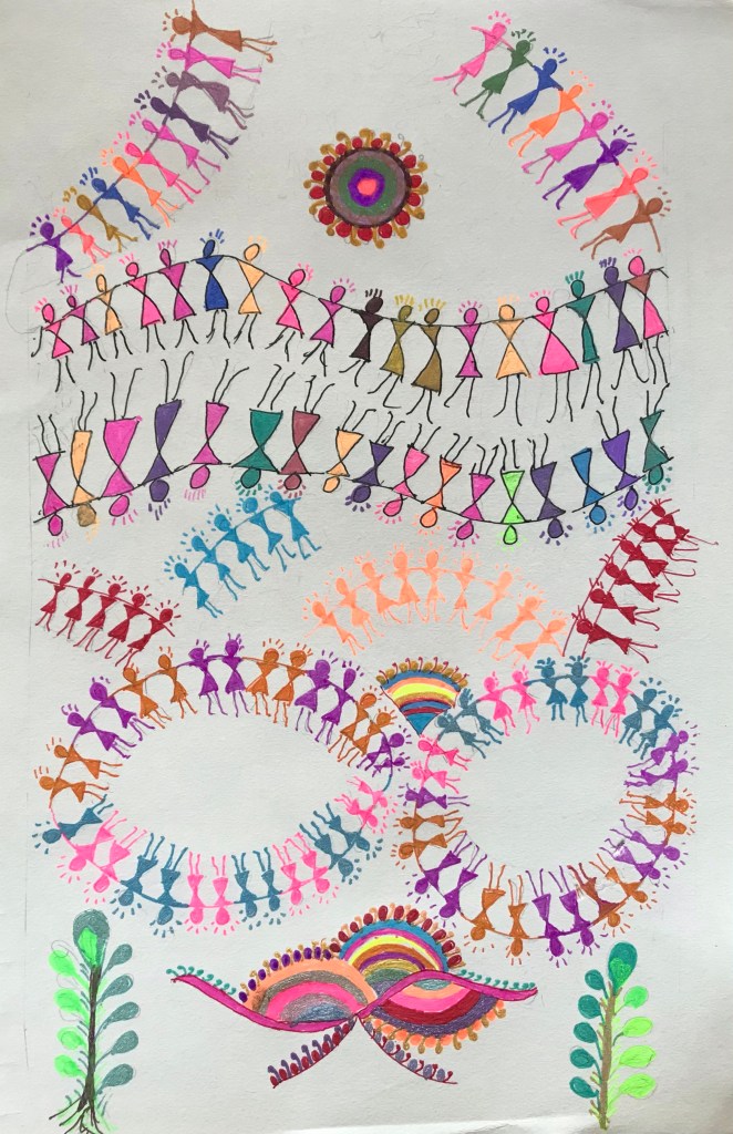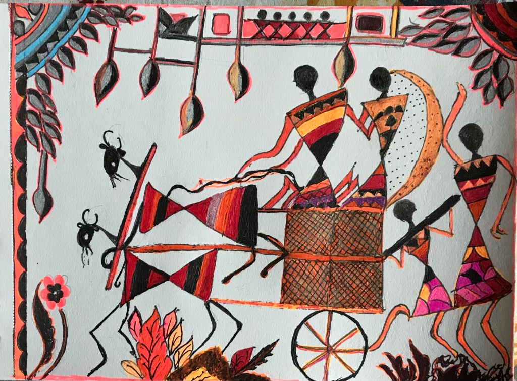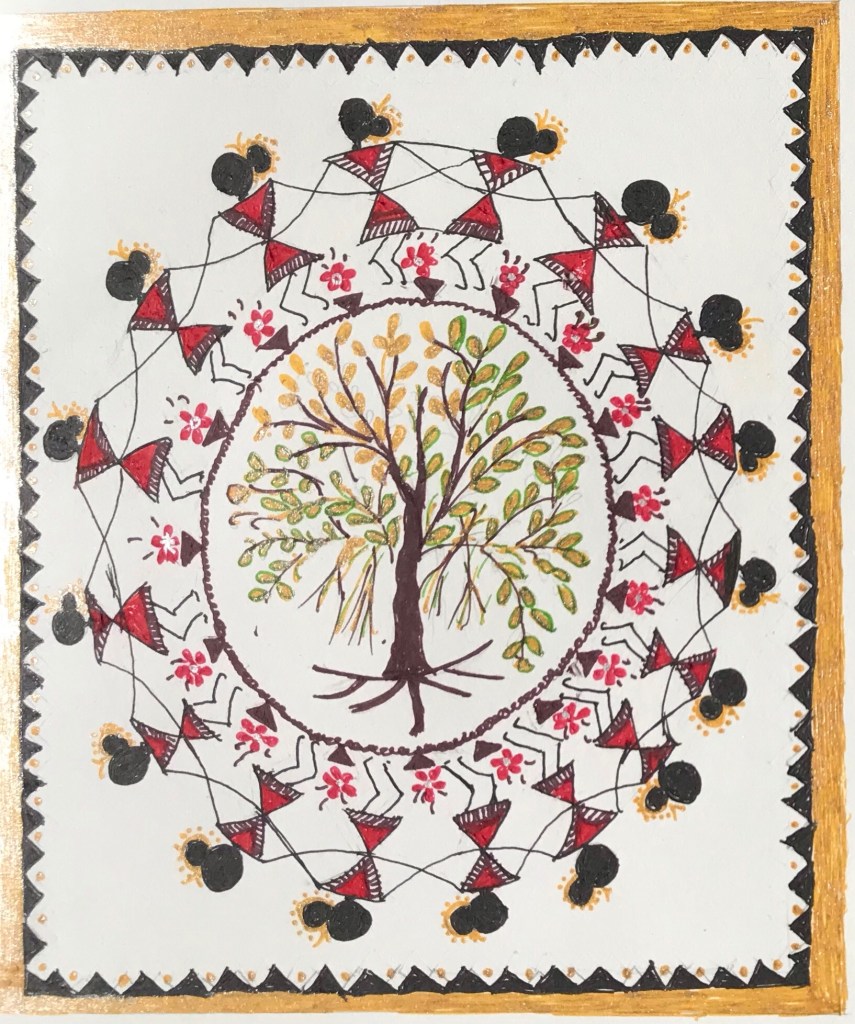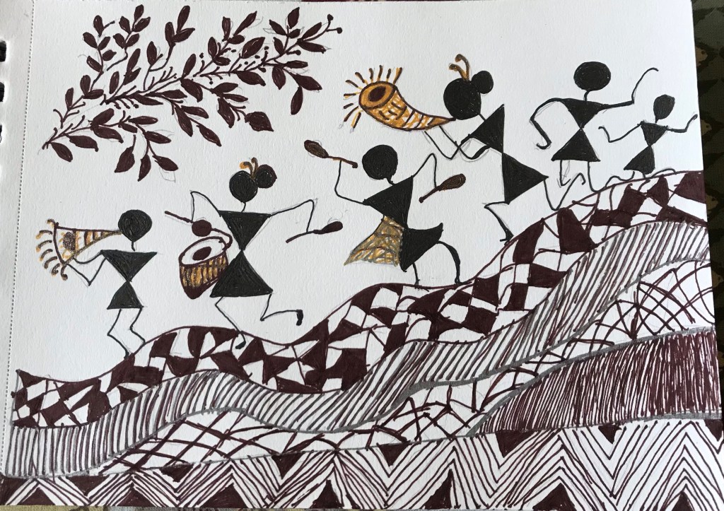 There is a hidden creative artist in everyone but normally one never realise, but I Mithlesh at the age of 68 realised this and without any training in drawing and painting started 45 days ago this Warli and Rangoli painting series and still journey goes on with lot’s of inspiration and appreciation from all of you . Thanks